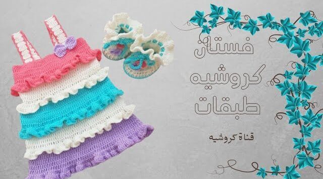 فإذا اردت تصميم فستان كروشيه طبقات لعمر أقل من سنتين فيمكنكي عمل ٥ طبقات بدلا من ستة