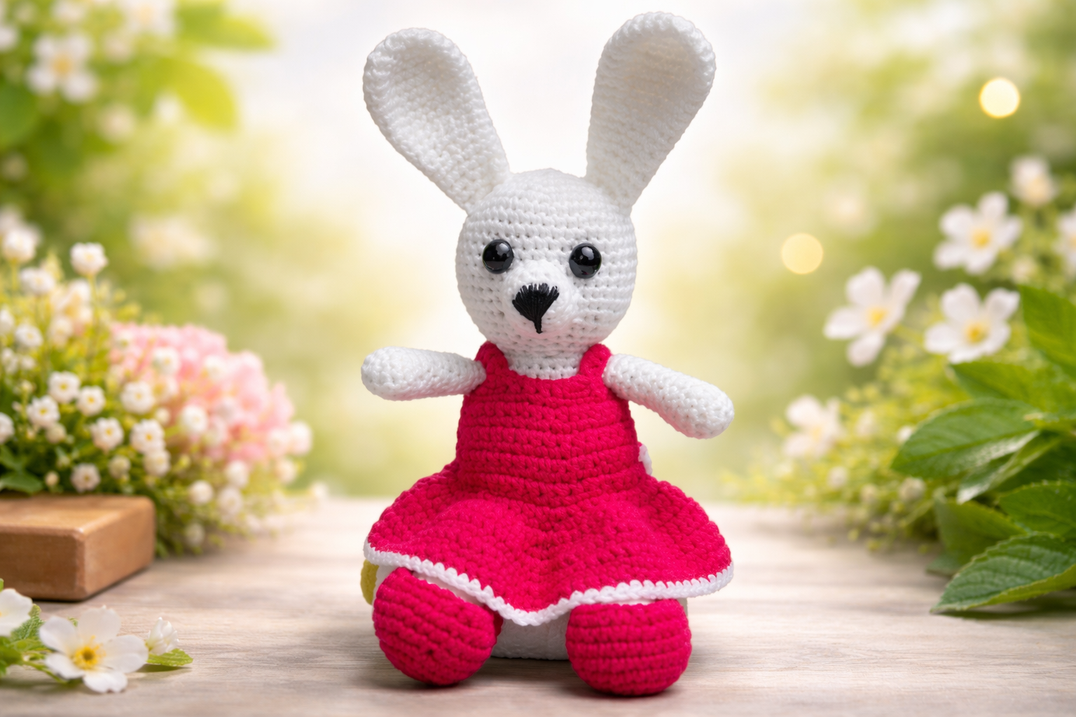باترون أرنب بالكروشيه ، من الدمى المفضلة لدى الأطفال ، الصغار منهم والكبار ، يفضلون دمية الأرنب ، وفي هذه المقالة سأوضح طريقة عمل دمية أرنب بالكروشيه خطوة بخطوة ، مع باترون كتابي مفصل ، وكيفية تجميع أجزاء الدمية ، وفي النهاية ، نحيك لدمية أرنب بالكروشيه فستانا وحذاء لتصبح أكثر جمالا